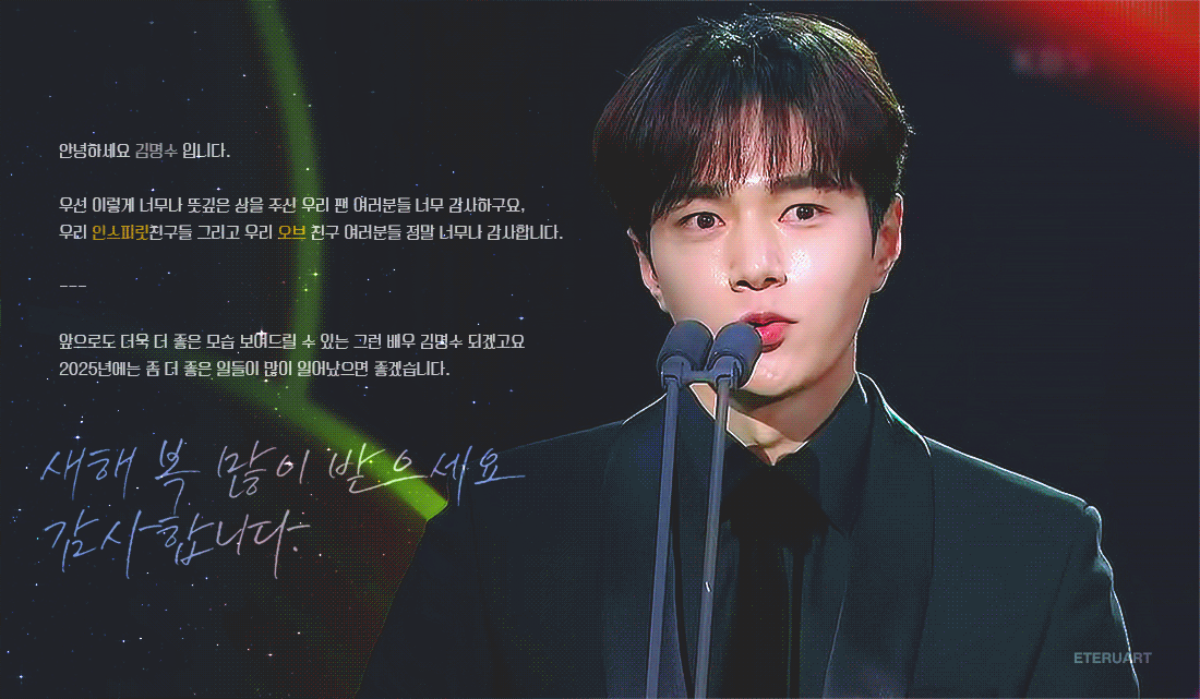 2024 KBS 연기대상 인기상 소감🏆 2025. 1. 12. 18:30 공유하기 게시글 관리 Eteru '아이돌 > 김묭' 카테고리의 다른 글 [Official MV] INFINITE(인피니트) 'Dangerous' (0) 2025.03.06 [Official Preview] INFINITE(인피니트) 8th Mini Album 'LIKE INFINITE' HIGHLIGHT MEDLEY (0) 2025.03.04 2024 - 2025 INFINITE 15TH ANNIVERSARY CONCERT<LIMITED EDITION> VCR (0) 2024.12.09 2024 - 2025 INFINITE 15TH ANNIVERSARY CONCERT<LIMITED EDITION> (0) 2024.12.09 It's Showtime South Korean singer and actor L Kim Myung-soo, NAGPAKILIG sa ‘It’s Showtime’ stage! (0) 2024.11.13 COMMENT